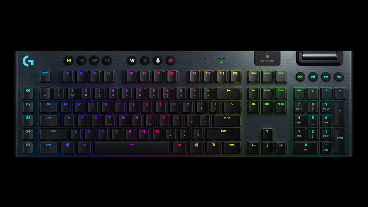 Mehanička gaming tastatura opremljena LIGHTSPEED bežičnom tehnologijom, LIGHTSYNC RGB osvetljenjem, aluminijumom, dugim trajanjem baterije, multimedijalnim tasterima i novim, niskoprofilnim GL mehaničkim tasterima.