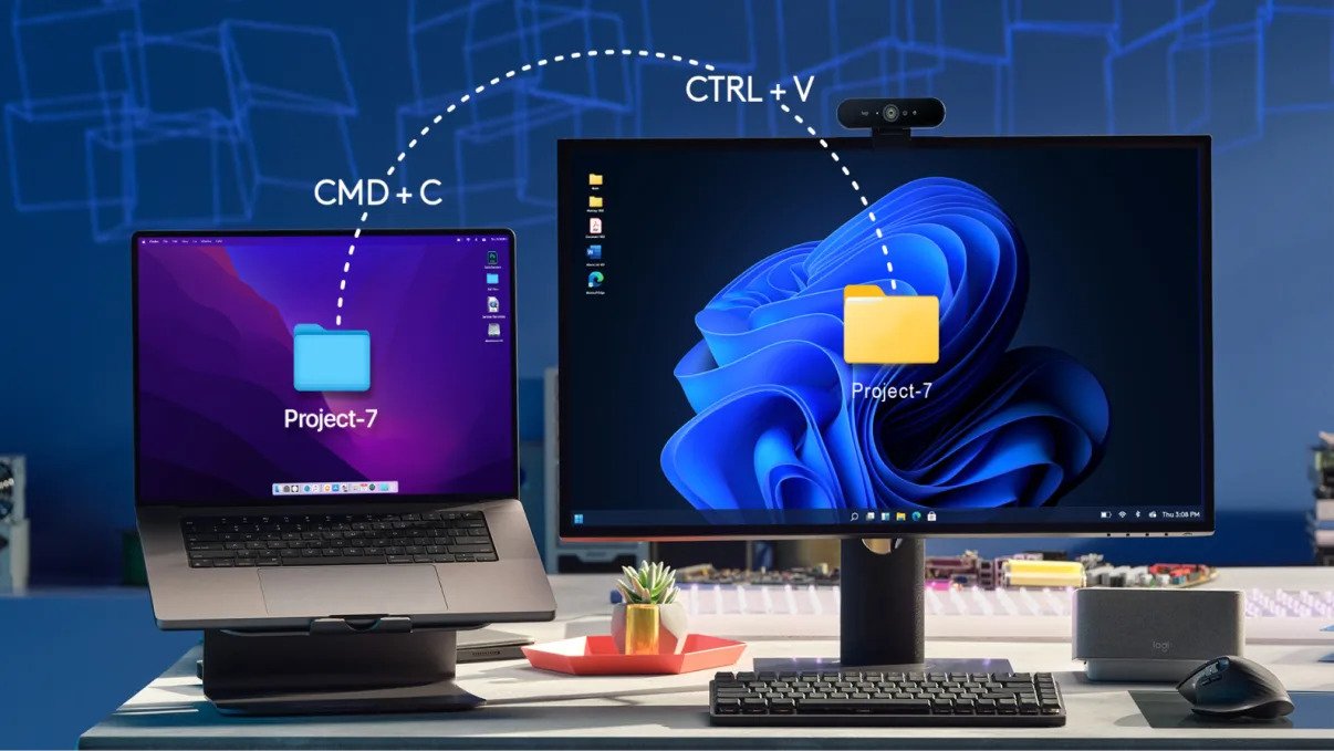 Uz Logi Options+ možete nesmetano raditi na nekoliko uređaja istovremeno pomeranjem kursora na ivicu ekrana. MX tastatura prati vaš MX Master 3S bežični miš, čak i između različitih operativnih sistema*. Prenesite tekstove, slike i druge datoteke s računara na računar uz jednostavnu naredbu kopiraj i zalepi. *Zahteva Logi Options+ softver, dostupan za Windows i macOS.